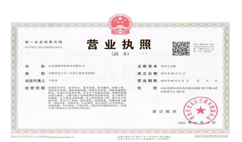 山東博通環(huán)保技術有限公司是一家專業從事環(huán)保、安全、消防的多元化技術服務公司,公司致力于打造專業的技術服務團隊,立足青島,輻射山東,服務范圍涵蓋:環(huán)保技術開發(fā)、技術轉讓、技術咨詢、技術服務;環(huán)保工程;消防技術咨詢;消防設施檢測;消防安全評估;消防設施維護保養;環(huán)境應急預案咨詢;安全生產標準化咨詢;場地環(huán)境調查報告編制,土壤與地下水環(huán)境調查及風險評估,水土保持方案編制,水土保持過程監(jiān)測,水土保持驗收工程,排污許可申報代理,清潔生產審核;批發(fā)零售:環(huán)保設備、機械設備與配件、消防設備、儀器儀表、五金建材、化學試劑(不含危險品)。公司具有“建設手續(xù)一站式辦理,安環(huán)問題一條龍解決”的獨特優(yōu)勢,可為客戶提供高效、優(yōu)質的安全、環(huán)保、消防管家技術服務。